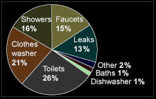 - Bathroom use accounts for about 75 percent of the water used inside the home.